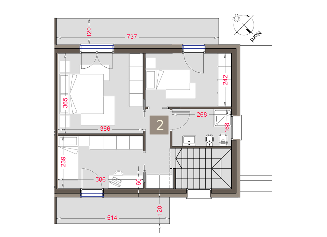 Villetta a schiera composta da ampio soggiorno con angolo cottura, tre camere, due bagni, e giardino di proprietà mq. 161 e box doppio a piano terra. Classe energetica non inferiore ad A3. Prestazione energetica in fase di rilascio.