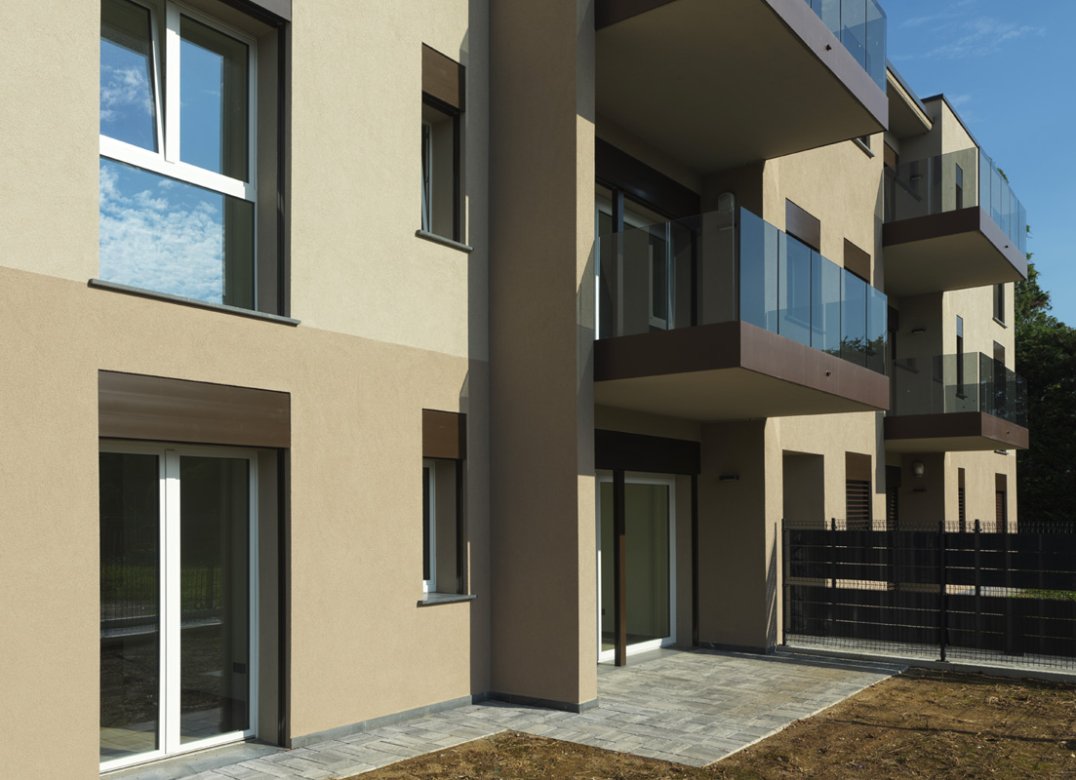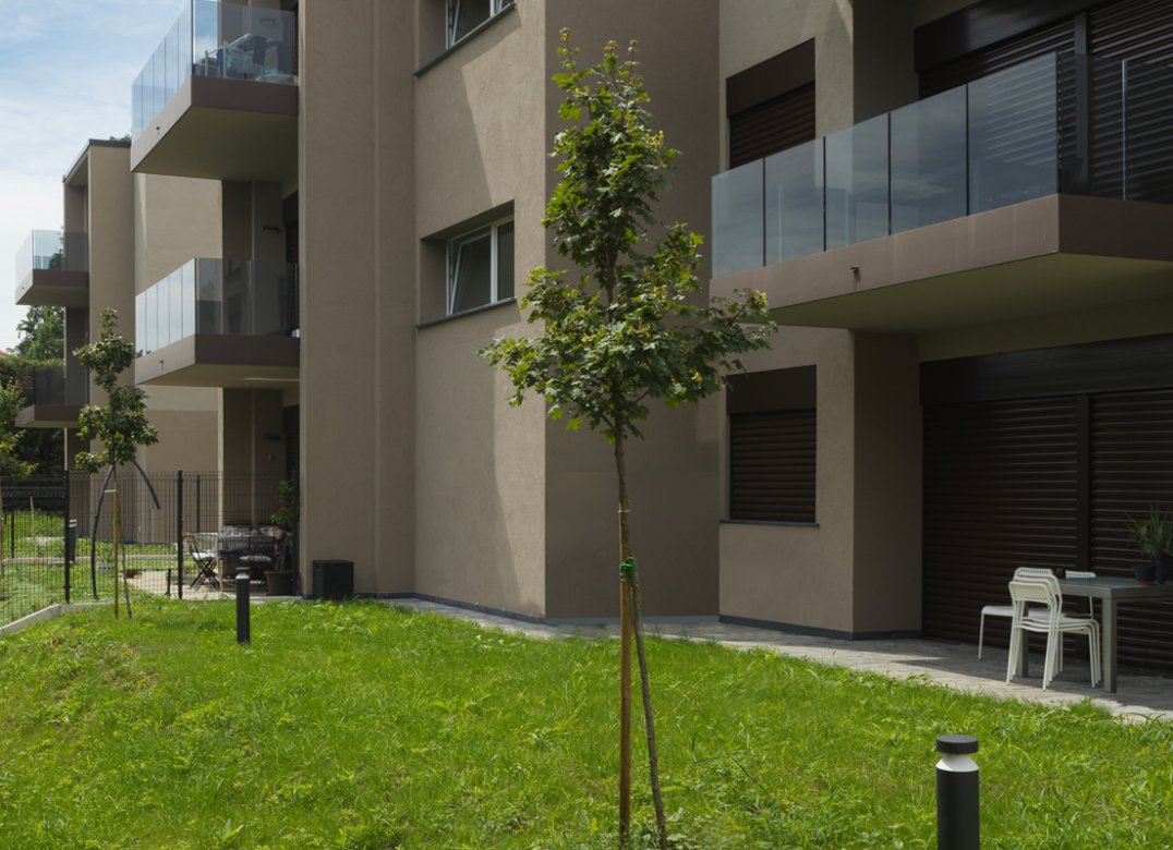 Trilocale a Piano Terra costituito da: soggiorno con angolo cottura, disimpegno, due camere, due bagni, portico e giardino di proprietà di mq 255 e box. Classe energetica A3, prestazione energetica 44,01 kWh/mqannuo.