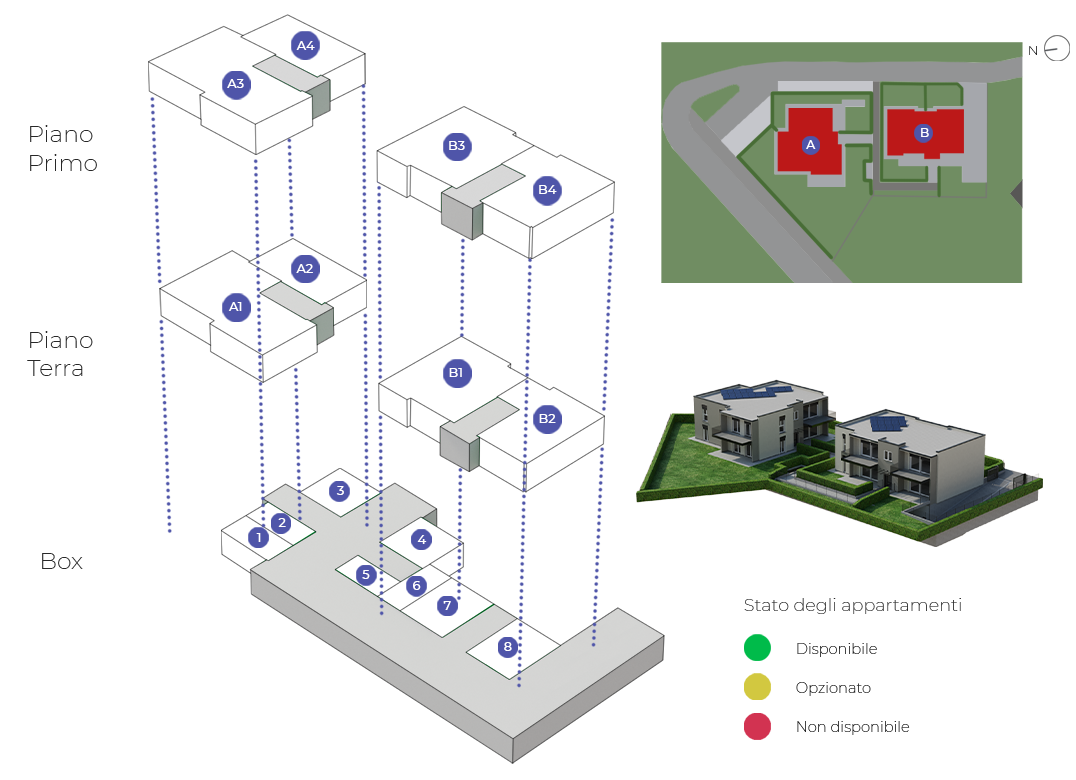 A Guanzate, in un contesto residenziale, soleggiato e verdeggiante, proponiamo un nuovo complesso residenziale, a basso consumo energetico, sviluppato su due piani abitabili fuori terra oltre ad un piano interrato. Immobile in classe energetica non inferiore ad A3 (valore di progetto indicativo). Proponiamo varie tipologie di appartamenti bilocali, trilocali e quadrilocali con portico e giardino di proprietà al piano terra e con luminoso terrazzo per quelli ai piani superiori. Con annesso box al piano interrato.