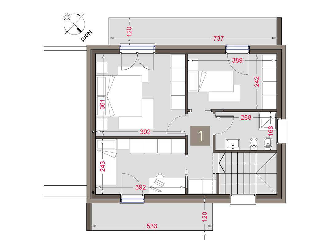 Villetta a schiera composta da ampio soggiorno con angolo cottura, tre camere, due bagni, e giardino di proprietà mq. 161 e box doppio a piano terra. Classe energetica non inferiore ad A3. Prestazione energetica in fase di rilascio.