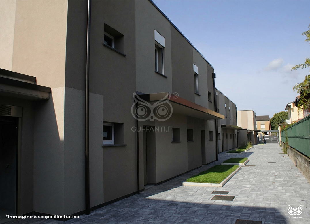 Villetta a schiera composta da ampio soggiorno con angolo cottura, tre camere, due bagni, e giardino di proprietà mq. 161 e box doppio a piano terra. Impianto fotovoltaico privato da 5,0 Kw. Classe energetica A3, prestazione energetica 57,82 kWh/mqannuo.