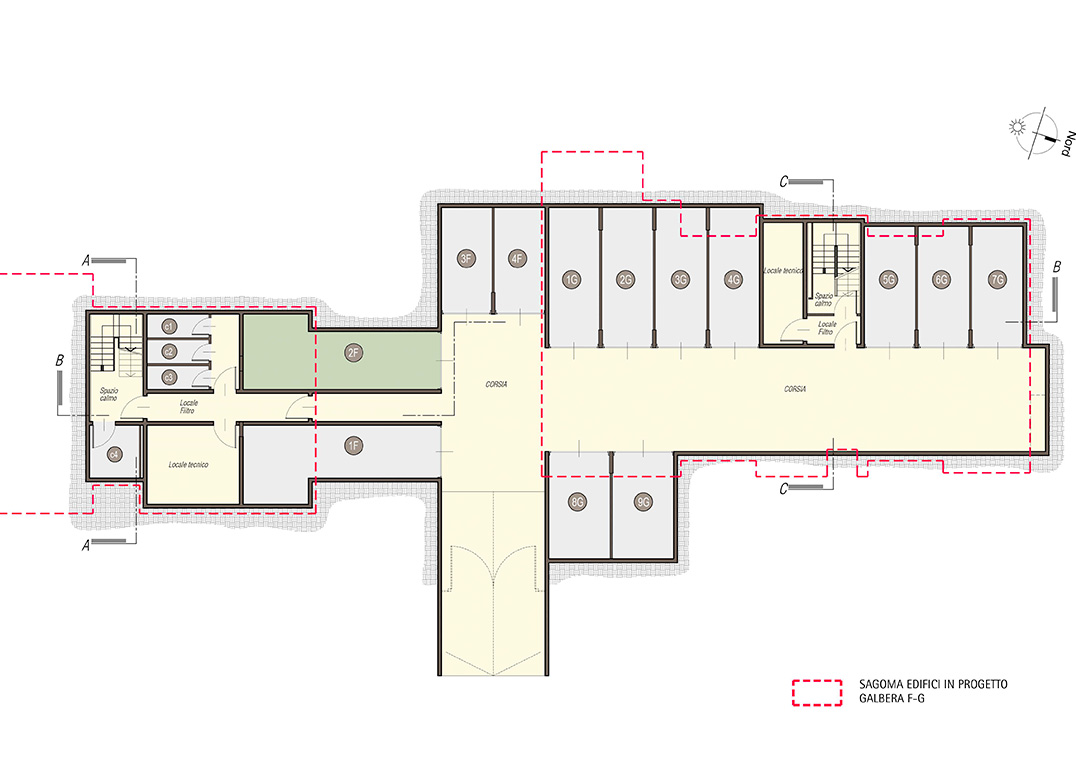 Quadrilocale a Piano Primo composto da soggiorno-cottura, tre camere, due bagni e due disimpegni. Terrazzo di mq. 26,76. Classe energetica A4, prestazione energetica 35,75 kWh/mqannuo.