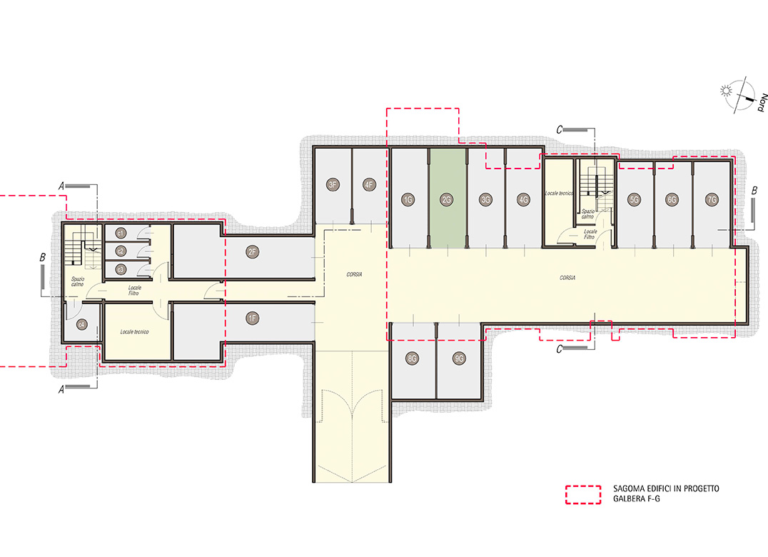 Quadrilocale a Piano Primo composto da soggiorno-cottura, tre camere, due bagni e due disimpegni. Terrazzo di mq. 26,76. Classe energetica A4, prestazione energetica 35,75 kWh/mqannuo.