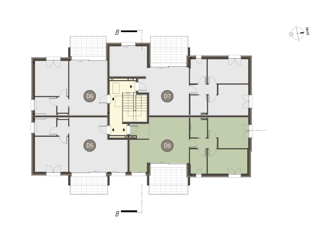 Quadrilocale a Piano Primo composto da soggiorno, cucina, due camere, studio, due bagni e due terrazzi per un totale di 24,77mq. Classe energetica non inferiore ad A3 (valore di progetto indicativo). Prestazione energetica in fase di rilascio.