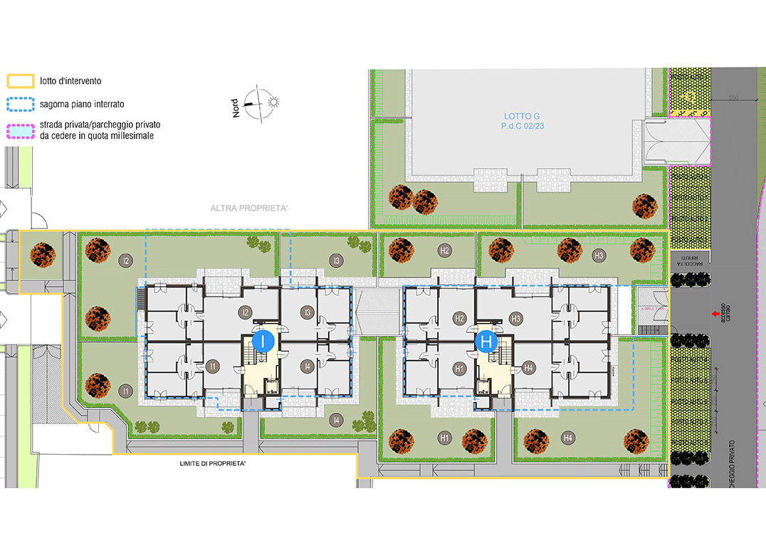 Trilocale a Piano terra con cucina/soggiorno, due camere, due bagni e giardino di proprietà di 196 mq. Classe energetica A3 (valore di progetto indicativo)