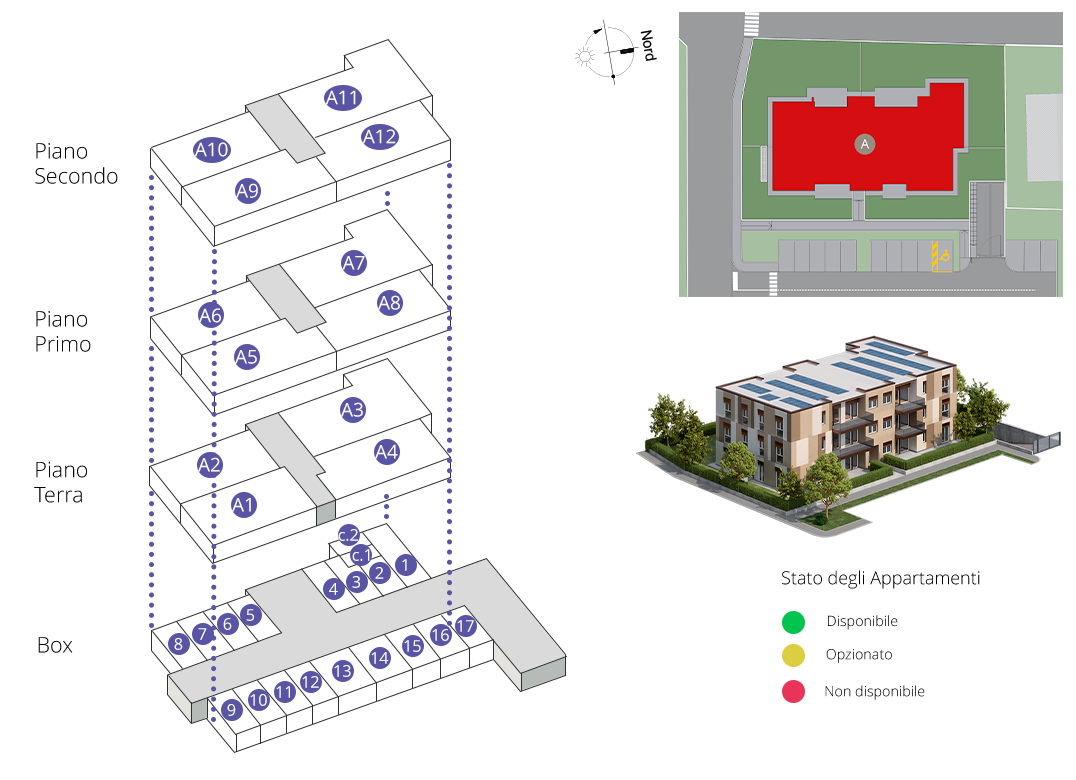 Trilocale a Piano terra con soggiorno con cucina a vista, due camere, due bagni, portico e giardino di proprietà di 204 mq.Classe energetica A3 (valore di progetto). Le immagini e la rappresentazione grafica dei prodotti (immagini, dati tecnici e descrizioni) è realizzata al solo scopo di illustrare il prodotto ed è puramente indicativa. I prodotti possono pertanto differire da quanto rappresentato.