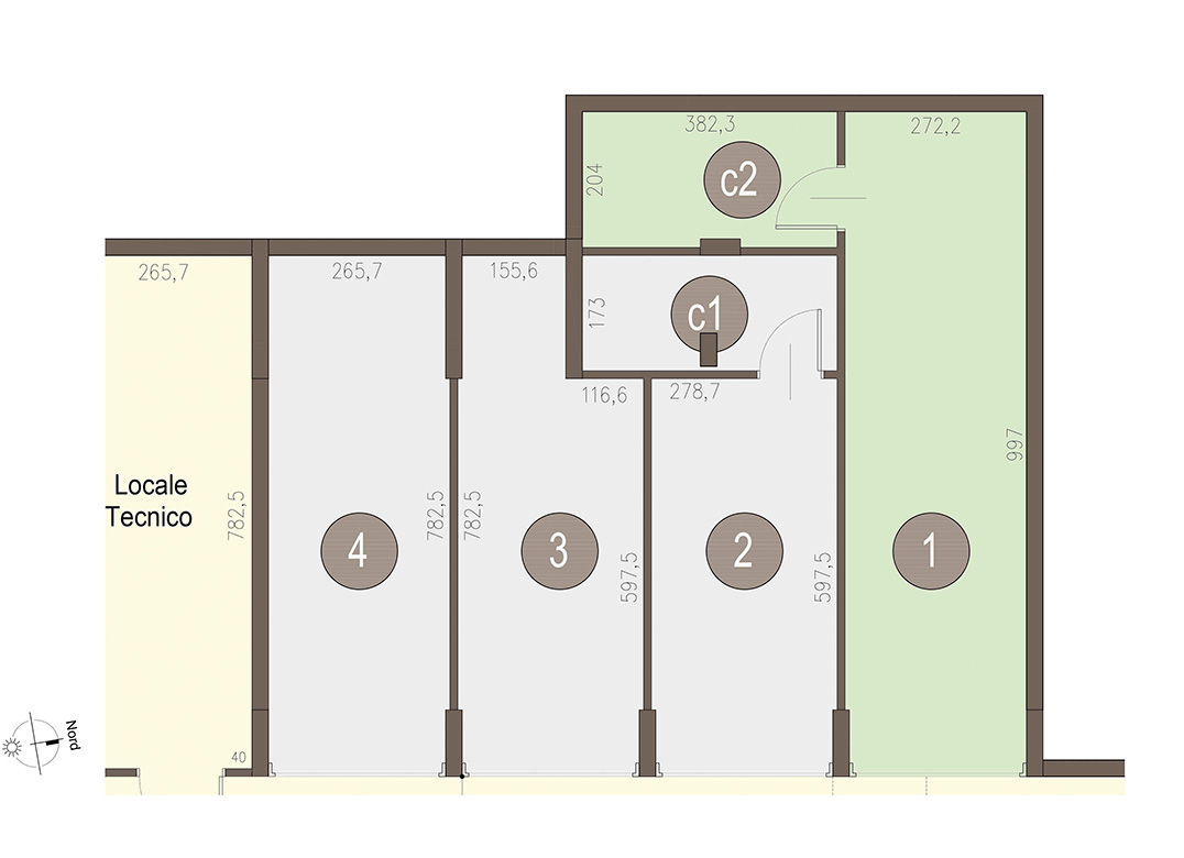 Qudrilocale a Piano Primo con soggiorno con angolo cottura, tre camere, due bagni, disimpegno e terrazzo di 25 mq. Classe energetica A3 (valore di progetto).