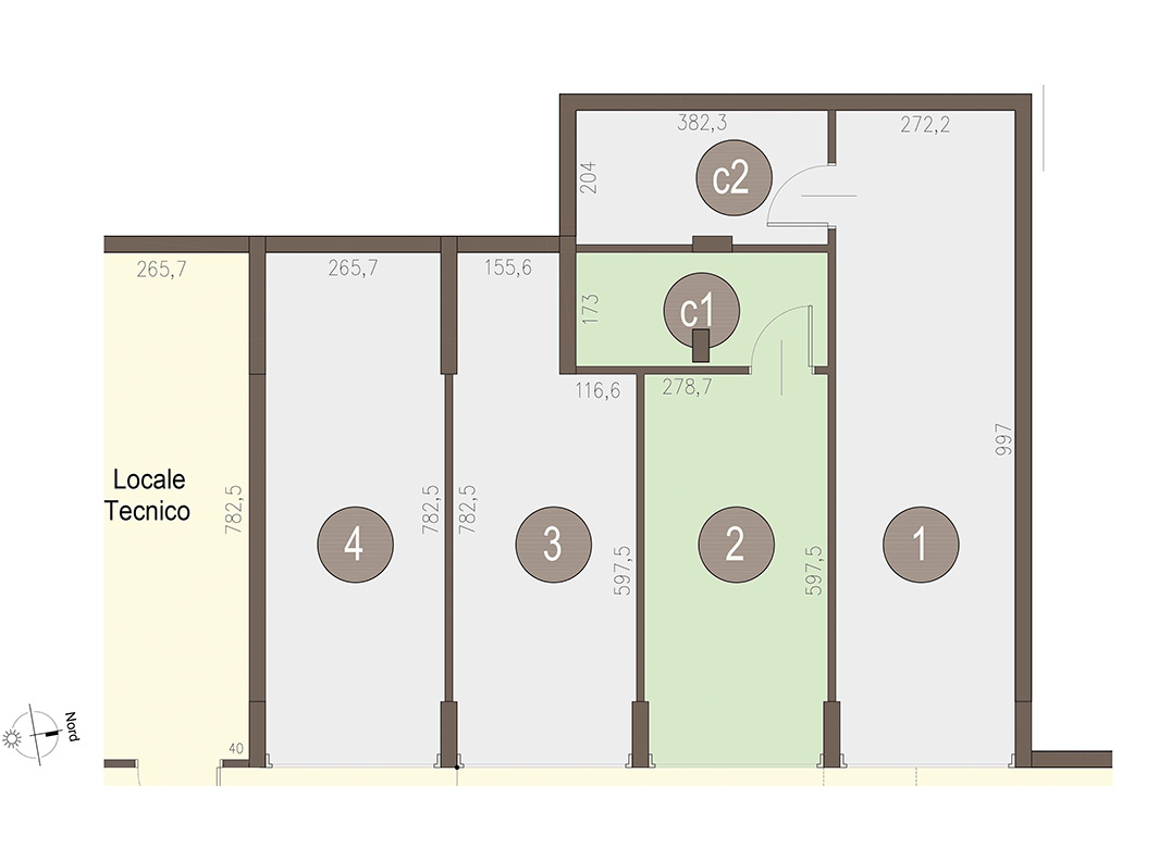Qudrilocale a Piano Primo con soggiorno con angolo cottura, tre camere, due bagni, disimpegno e terrazzo di 25 mq. Classe energetica A3 (valore di progetto).