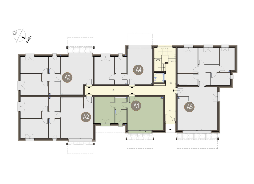 Quadrilocale a Piano Primo con soggiorno con cucina a vista, tre camere, due bagni, disimpegno e terrazzo di 17 mq. Classe energetica A3 (valore di progetto).