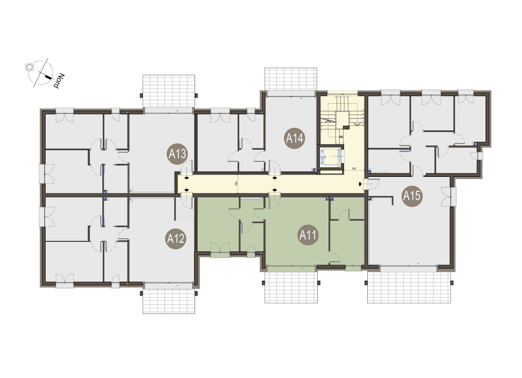 Quadrilocale a Piano Primo con soggiorno con cucina a vista, tre camere, due bagni, disimpegno e terrazzo di 17 mq. Classe energetica A3 (valore di progetto).