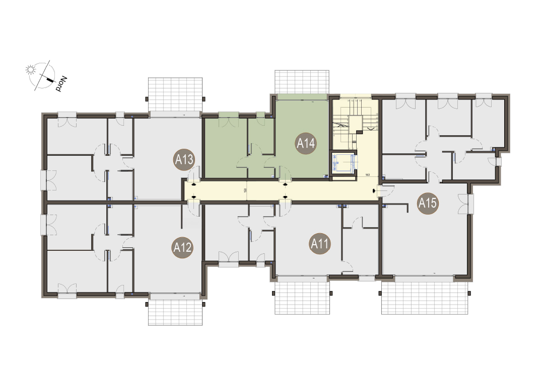 Quadrilocale a Piano Primo con soggiorno con cucina a vista, tre camere, due bagni, disimpegno e terrazzo di 17 mq. Classe energetica A3 (valore di progetto).
