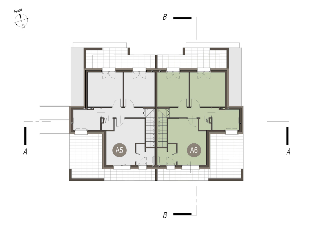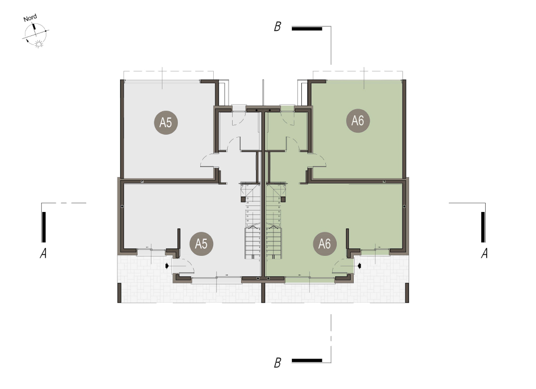 Villa Bifamiliare con cucina con soggiorno, tre camere, tre bagni, ingresso, ripostiglio, terrazzo, portico, giardino di proprietà di 80 mq, box doppio. Impianto fotovoltaico privato da 6,5 kw. Classe energetica A3 (valore di progetto).