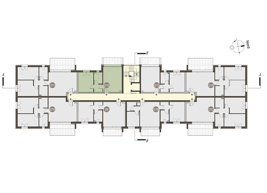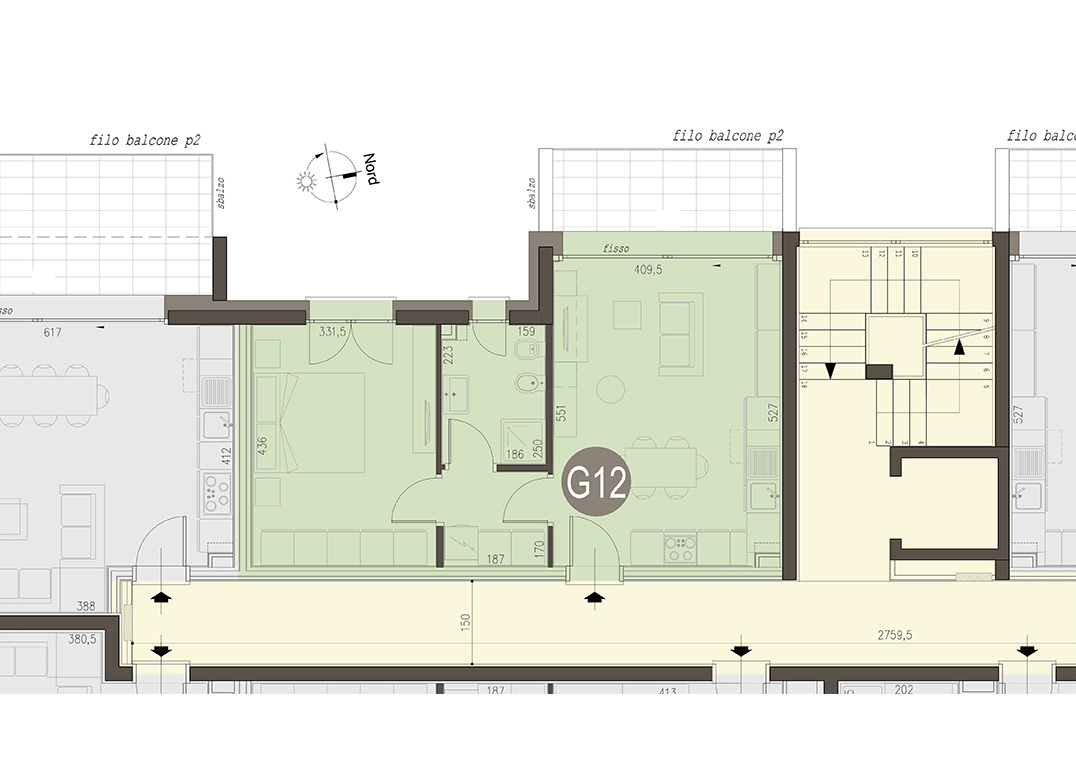 Bilocale a Piano Secondo con soggiorno con cucina, una camera, un bagno, disimpregno e terrazzo di 6 mq. Classe energetica A3 (valore di progetto).