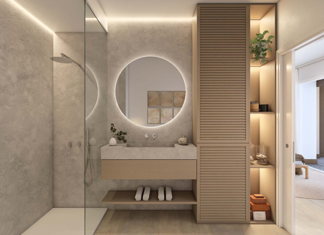 Trilocale a Piano Primo con soggiorno con cucina a vista, due camere, due bagni e terrazzo di 13 mq Classe energetica A3 (valore di progetto).