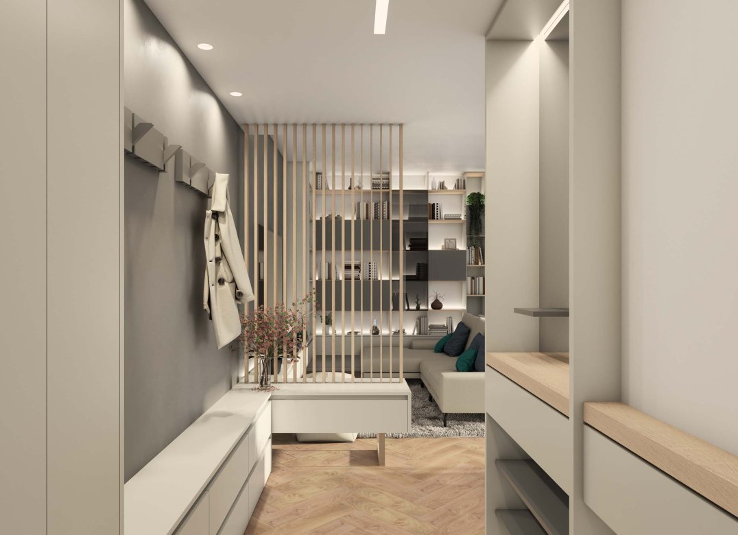 Bilocale a Piano Terra con soggiorno con cucina a vista, una camera, un bagno, disimpegno, portico e giardino di proprietà di 75 mq Classe energetica A3 (valore di progetto).