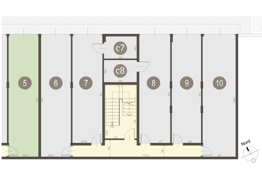 Trilocale a piano terra con soggiorno con cucina a vista, due camere, un bagno, disimpegno, portico e giardino di proprietà di 34 mq. Classe energetica A3 (valore di progetto).