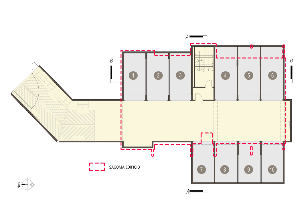 Trilocale a piano primo con soggiorno con cucina a vista, una camera, un bagno, disimpegno e terrazzo di 10 mq. Classe energetica A3 (valore di progetto).