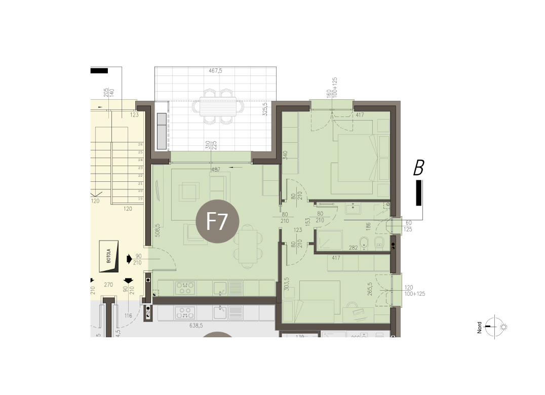 Trilocale a piano primo con soggiorno con cucina a vista, due camere, un bagno, disimpegno e terrazzo di 12 mq. Classe energetica A3 (valore di progetto). Le immagini e la rappresentazione grafica dei prodotti (immagini, dati tecnici e descrizioni) è realizzata al solo scopo di illustrare il prodotto ed è puramente indicativa. I prodotti possono pertanto differire da quanto rappresentato.