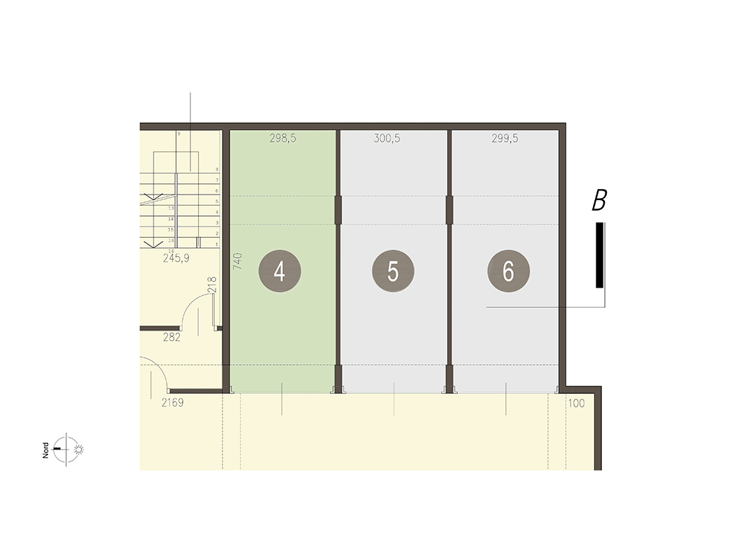 Bilocale a piano terra con soggiorno con cucina a vista, una camera, un bagno, disimpegno, portico e giardino di proprietà di 207 mq. Classe energetica A3 (valore di progetto).