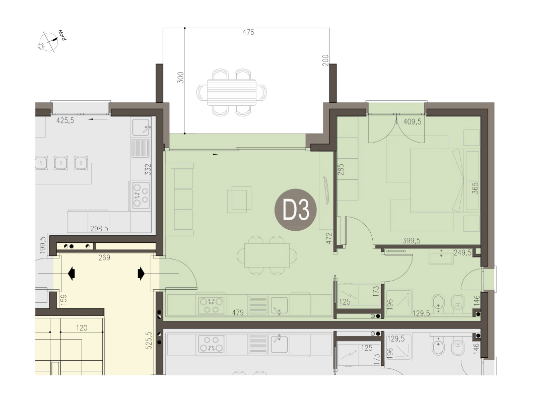 Bilocale a Piano Terra con soggiorno con cucina a vista, una camera, un bagno, disimpegno, portico e giardino di proprietà di 125 mq. Classe energetica A3 (valore di progetto). Le immagini e la rappresentazione grafica dei prodotti (immagini, dati tecnici e descrizioni) è realizzata al solo scopo di illustrare il prodotto ed è puramente indicativa. I prodotti possono pertanto differire da quanto rappresentato.