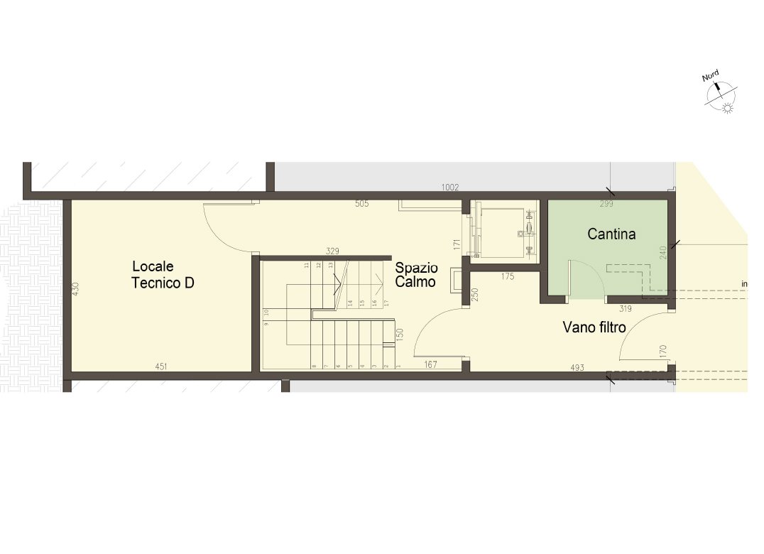 Trilocale a Piano Primo con soggiorno cucina a vista, due camere, disimpegno, un bagno, portico e terrazzo di 17 mq. Classe energetica A3 (valore di progetto).
