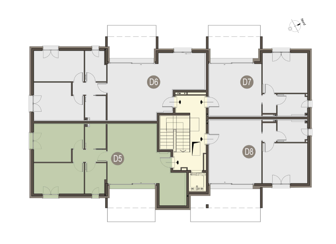 Quadrilocale a Piano Primo con soggiorno cucina a vista, due bagni, disimpegno, due camere e uno studio e terrazzo di 24 mq. Classe energetica A3 (valore di progetto).