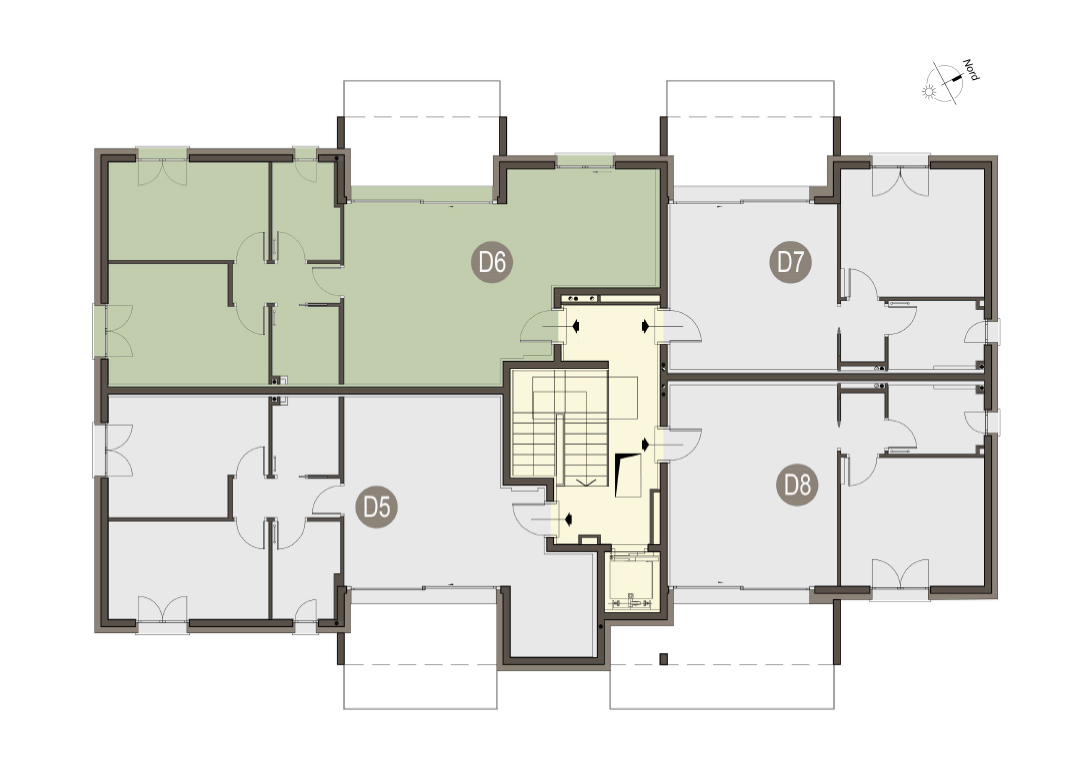 Quadrilocale a Piano Primo con soggiorno cucina a vista, due bagni, disimpegno, due camere e uno studio e terrazzo di 24 mq. Classe energetica A3 (valore di progetto).