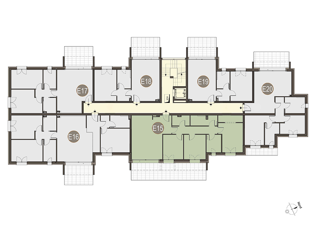 Trilocale a Piano Secondo con soggiorno con angolo cottura, disimpegno, due camere, due bagni e due terrazzi per un totale di 17 mq. Classe energetica A3 valore di progetto.