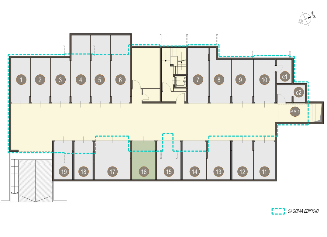 Bilocale a Piano Primo con soggiorno con cucina a vista, disimpegno, una camera, un bagno e terrazzo di 11 mq. Classe energetica A3 (valore di progetto).