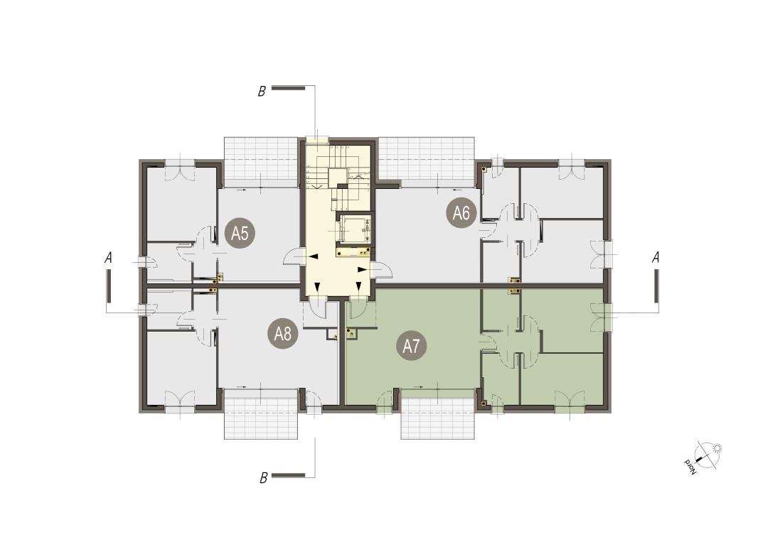 Trilocale a Piano Primo con ingresso, soggiorno con angolo cottura, due camere, due bagni, disimpegno e terrazzo di 9 mq. Classe energetica A3 (valore di progetto). Le immagini e la rappresentazione grafica dei prodotti (immagini, dati tecnici e descrizioni) è realizzata al solo scopo di illustrare il prodotto ed è puramente indicativa. I prodotti possono pertanto differire da quanto rappresentato.