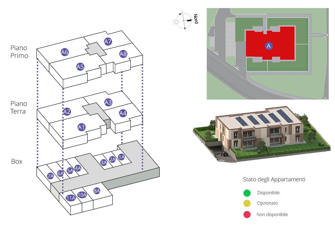 A Beregazzo con Figliaro proponiamo un nuovo complesso residenziale in area serena e verdeggiante, non lontana dal confine svizzero e da Como, a basso consumo energetico e sviluppato su due piani abitabili fuori terra oltre ad un pratico piano interrato adibito a box. Immobile in classe energetica non inferiore ad A3 (valore di progetto indicativo). Disponiamo di varia gamma di tipologie di appartamenti bilocali, trilocali e quadrilocali con portico e giardino di proprietà relativi agli appartamenti piano terra e soleggiato balcone in dotazione agli appartamenti ai piani superiori.