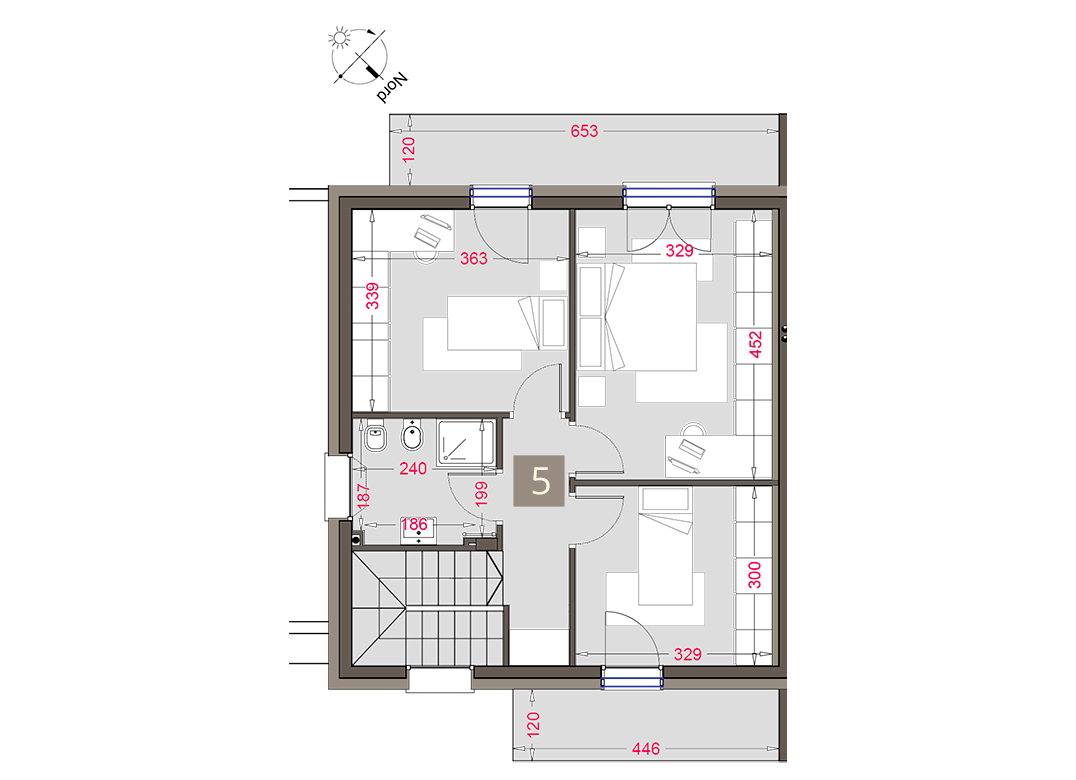 Terraced house consisting of large living room with kitchenette, three bedrooms, two bathrooms, and garden of property sqm. 41; with double garage. Energy class not less than A3. Energy performance during release.