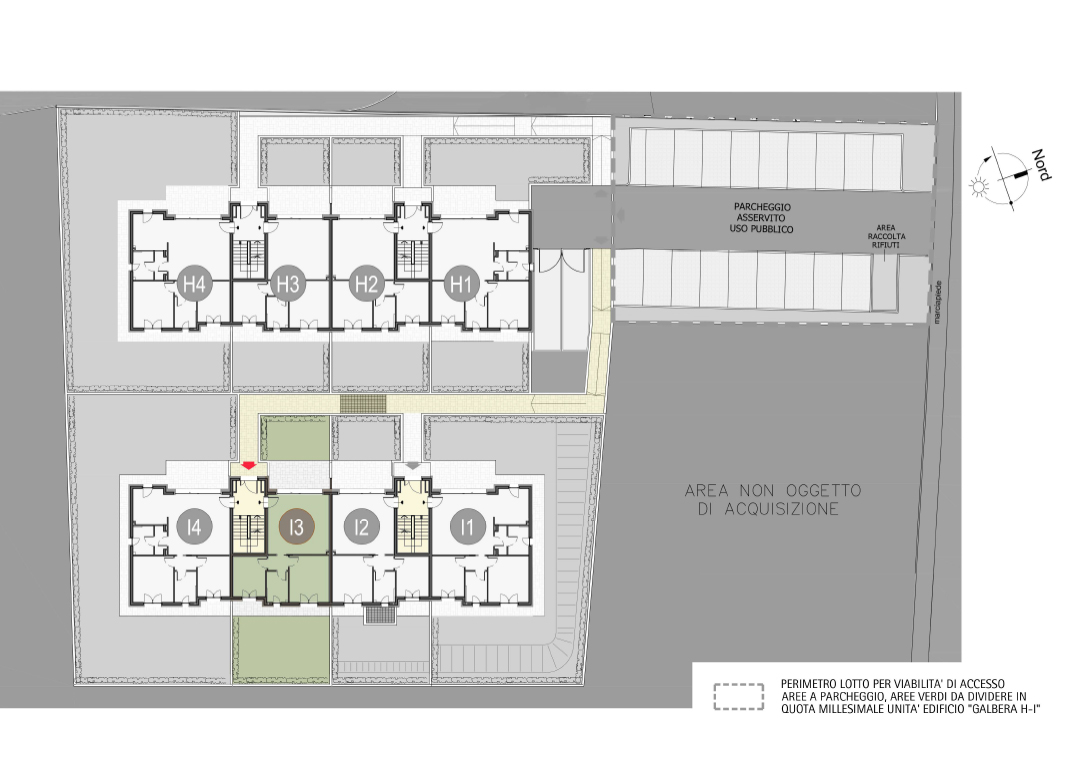 Three-room apartment on the ground floor composed of living room, two bedrooms, a bathroom, porch and hallway. Garden of property of sqm. 68,81 Energy class not less than A3 (indicative design value).