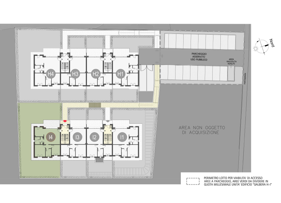 Three-room apartment on the ground floor composed of living room, two bedrooms, a bathroom, porch and hallway. Garden of property of sqm. 68,81 Energy class not less than A3 (indicative design value).