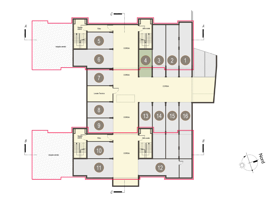 Three-room apartment on the first floor composed of living-cooking, two bedrooms, two bathrooms, two halls. Terrace of 12.54 sq. m. Energy class not less than A3 (indicative design value).
