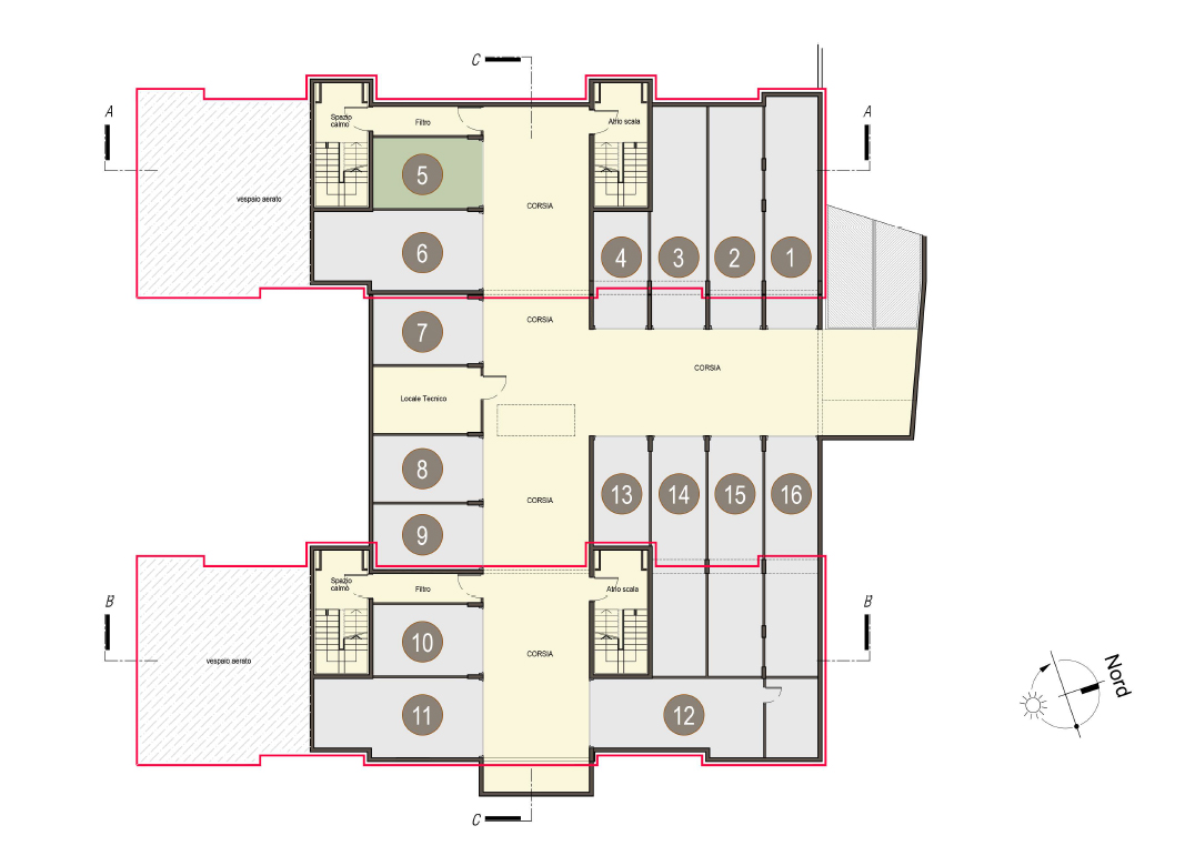 Three-room apartment on the first floor composed of living-kitchen, two bedrooms, two bathrooms and two halls. Terrace of sqm. 12.54. Energy class not less than A3 (indicative design value).