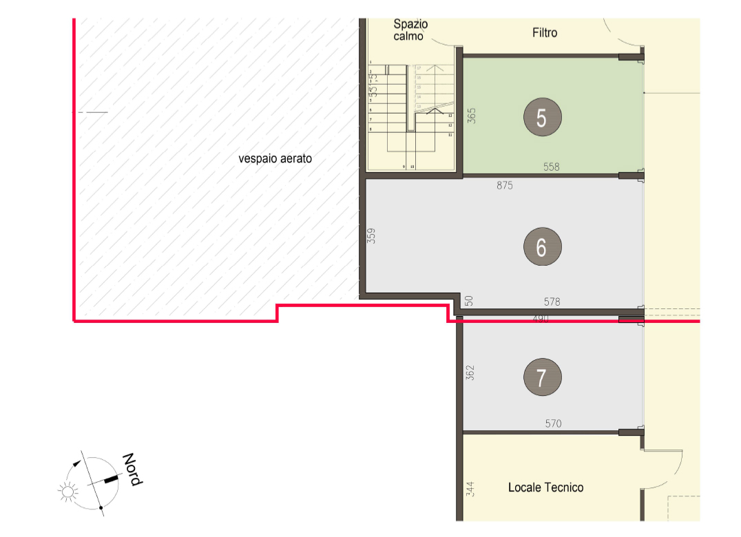 Three-room apartment on the ground floor with living room, two bedrooms, a bathroom, porch and hallway. Garden of property of mq. 80,17. Energy class not less than A3 (indicative design value).