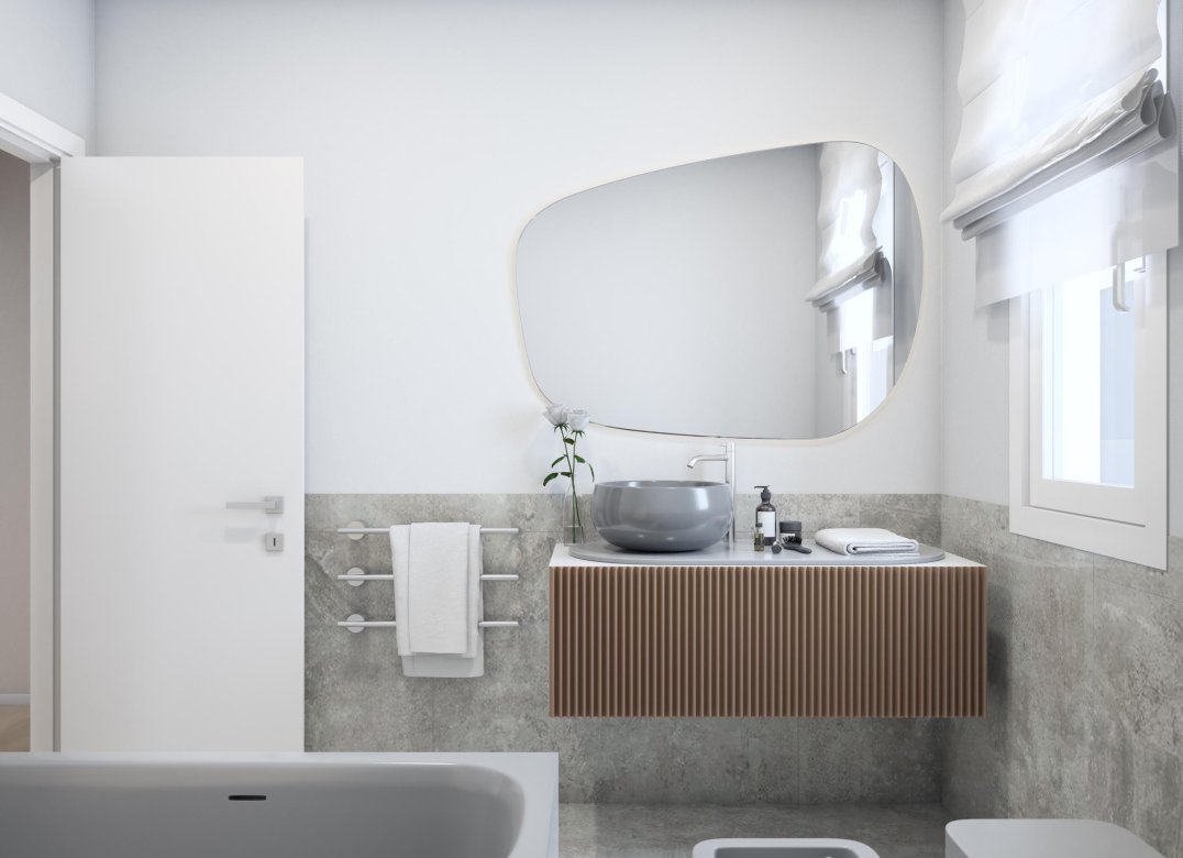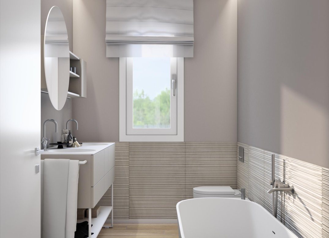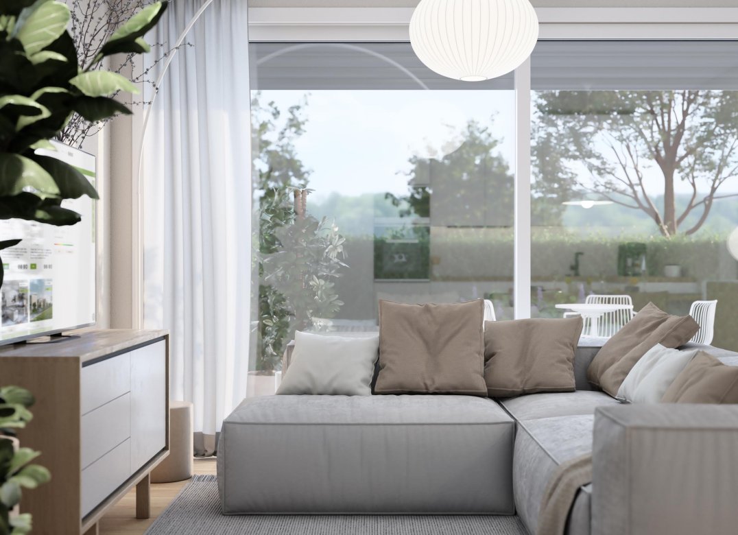 Trilocale a Piano Terra composto da soggiorno,cucina,due camere, due bagni, portico e due disimpegni. Giardino di proprietà di mq. 248,04. Classe energetica non inferiore ad A3 (valore di progetto).