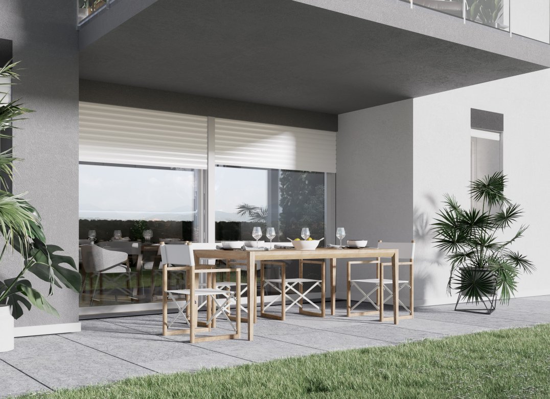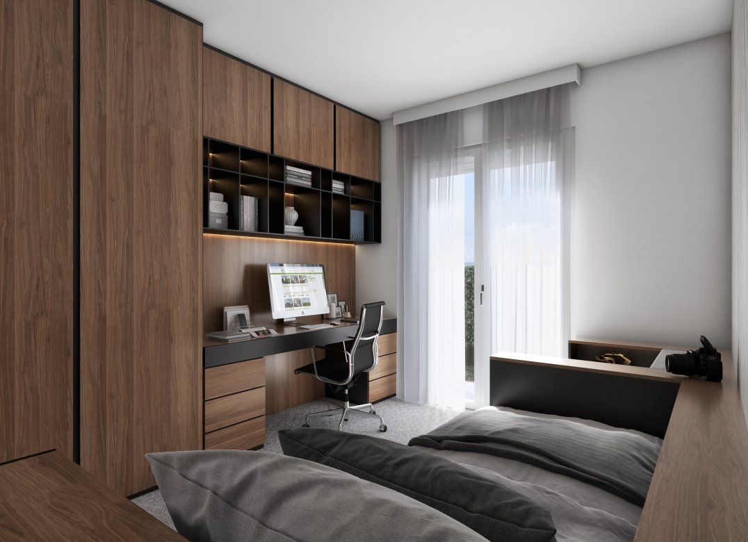 Quadrilocale a Piano Secondo con soggiorno con angolo cottura, due camere, uno studio, due bagni, due disimpegni, un ripostiglio e due terrazzi per un totale di 23 mq. Classe energetica A3 (valore di progetto). Le immagini e la rappresentazione grafica dei prodotti (immagini, dati tecnici e descrizioni) è realizzata al solo scopo di illustrare il prodotto ed è puramente indicativa. I prodotti possono pertanto differire da quanto rappresentato.