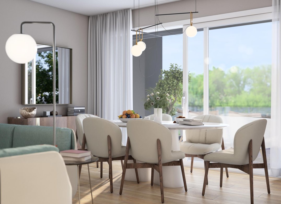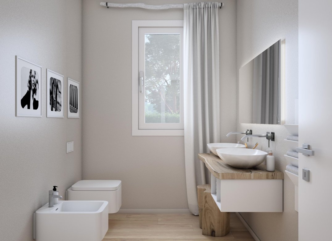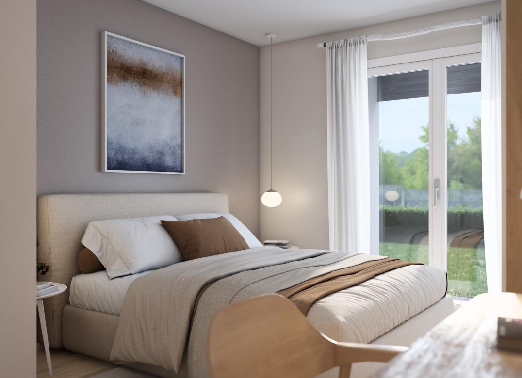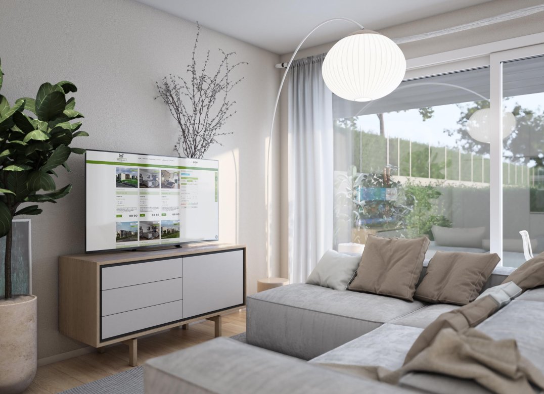Trilocale a Piano Terra composto da soggiorno,cucina,due camere, due bagni, portico e due disimpegni. Giardino di proprietà di mq. 248,04. Classe energetica non inferiore ad A3 (valore di progetto).