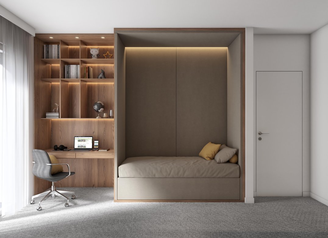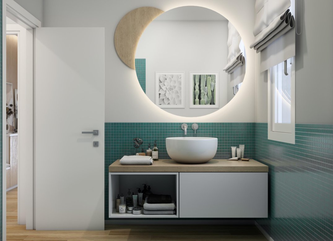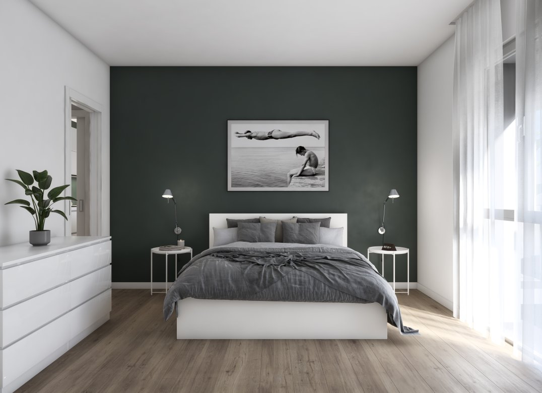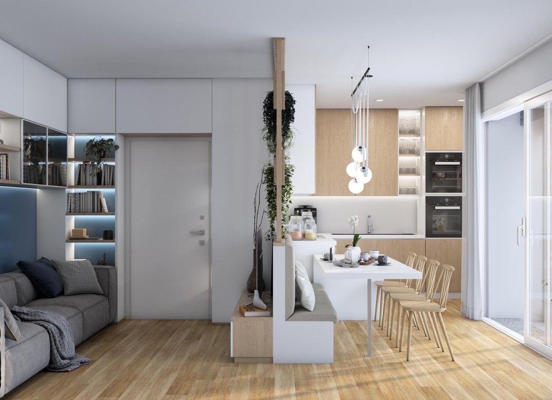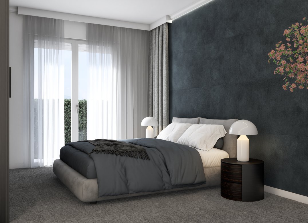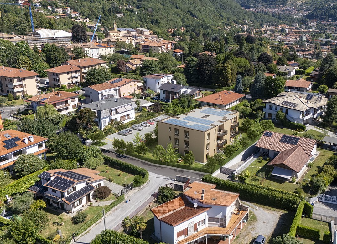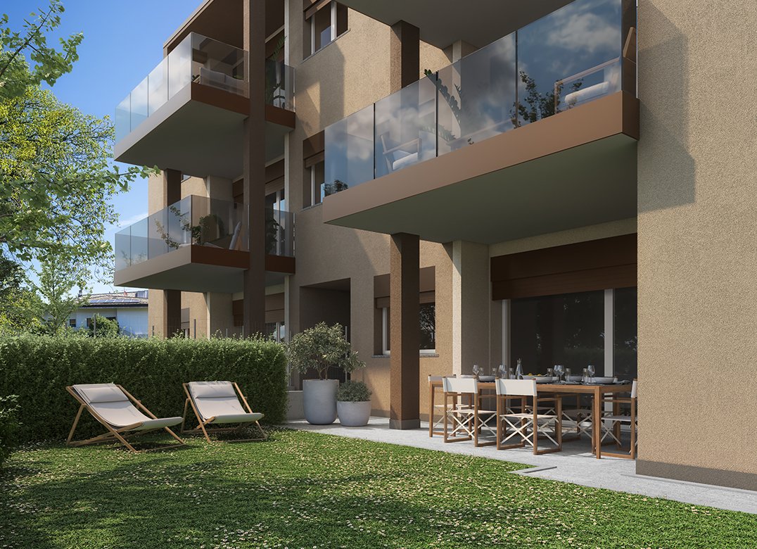 Four-room apartment on the second floor with living room with kitchenette, two bedrooms, a study, two bathrooms, two lobbies, a storage room and two terraces for a total of 23 square meters. Energy class A3 design value.