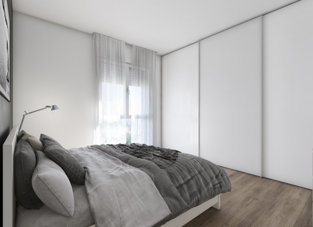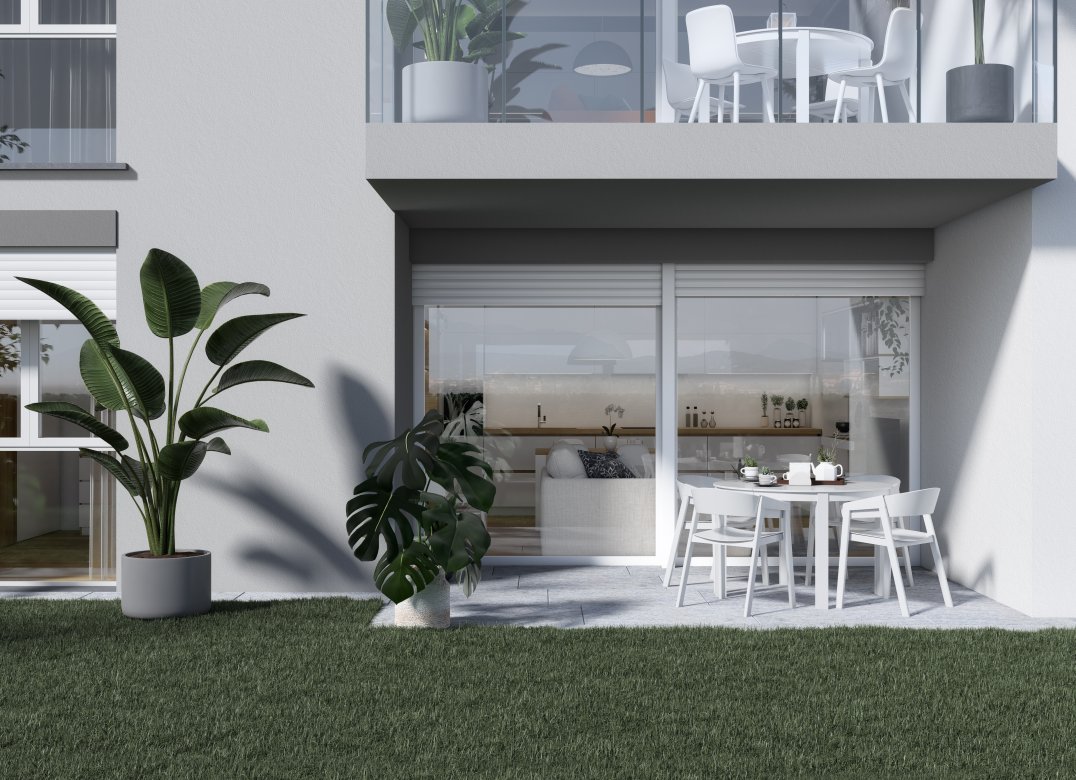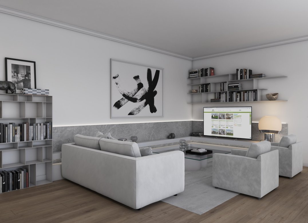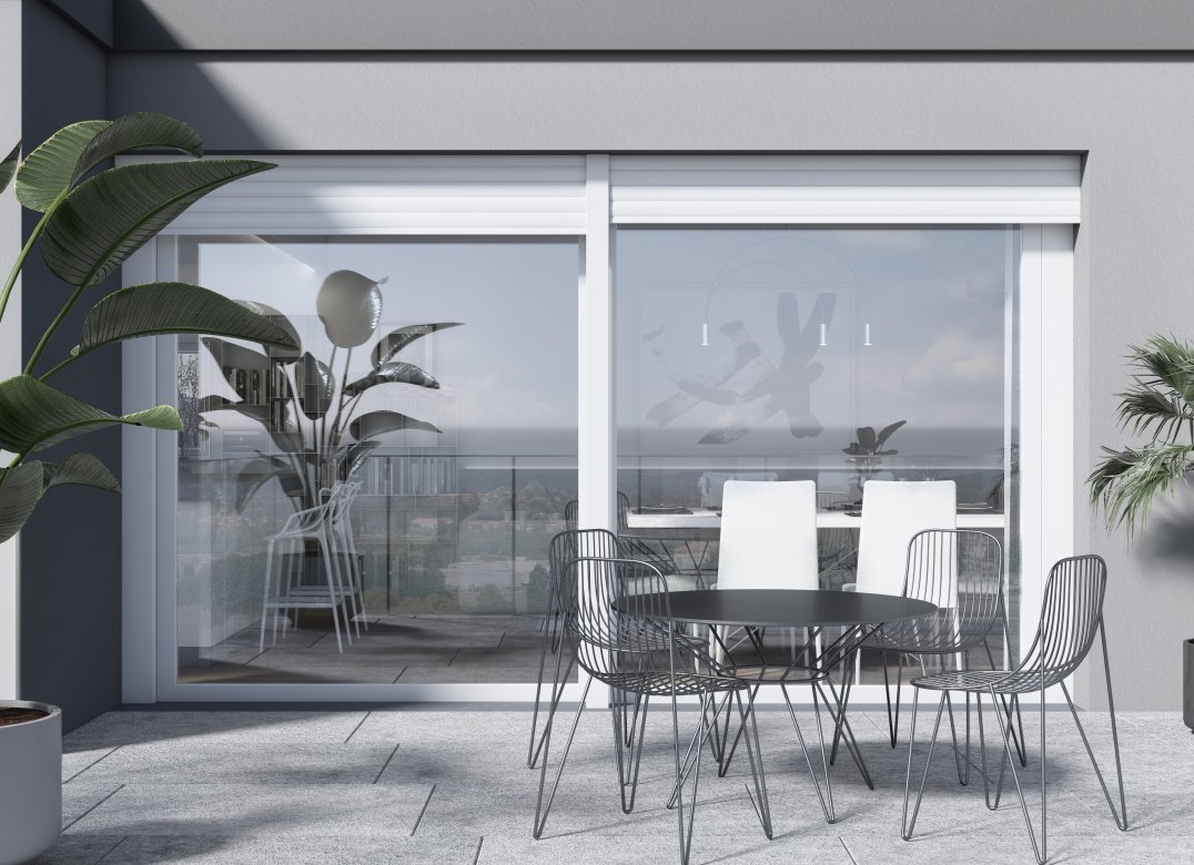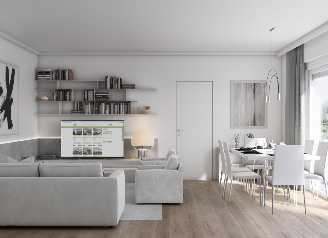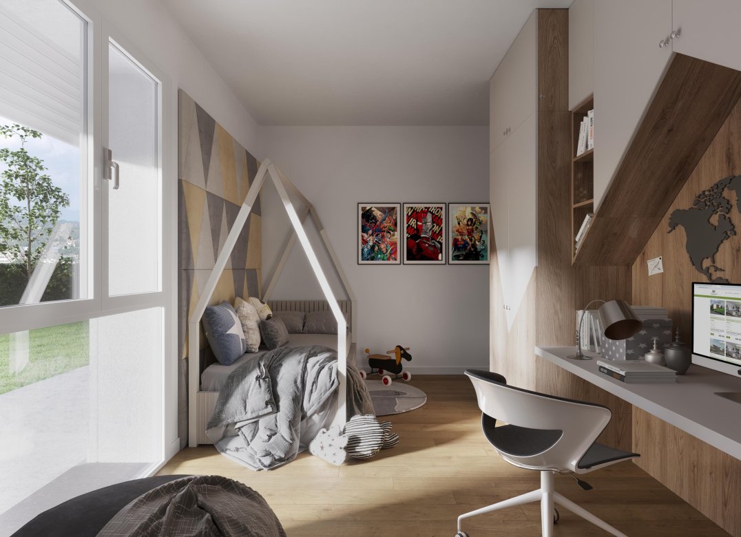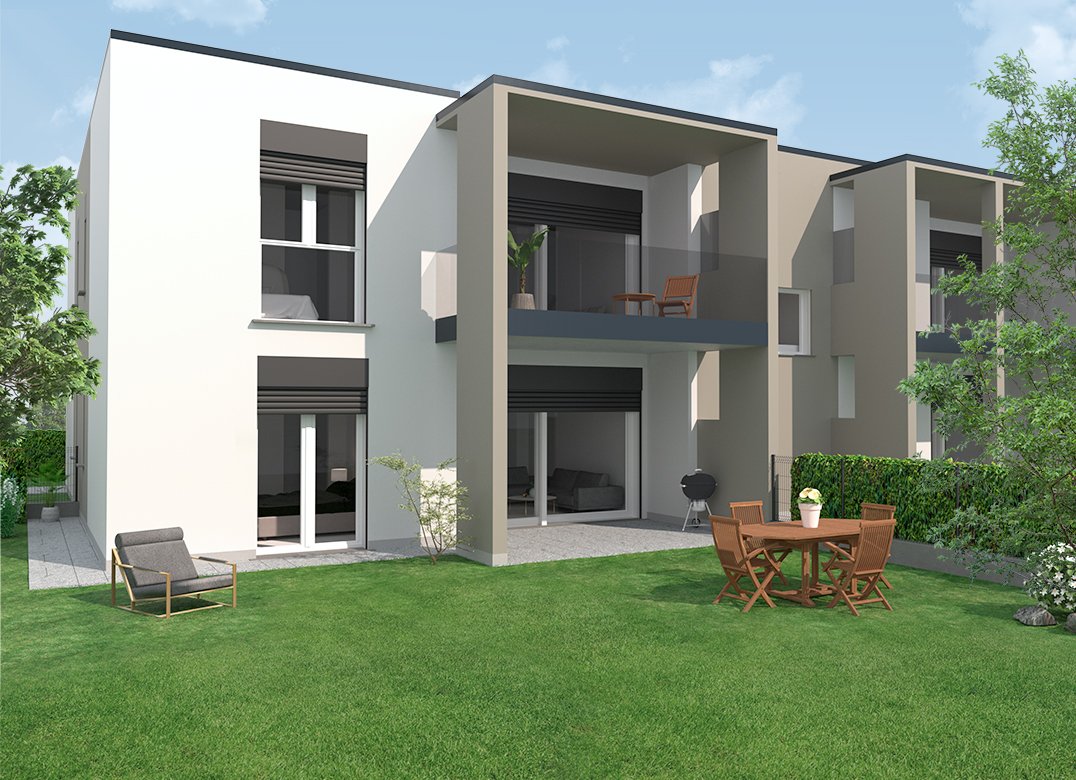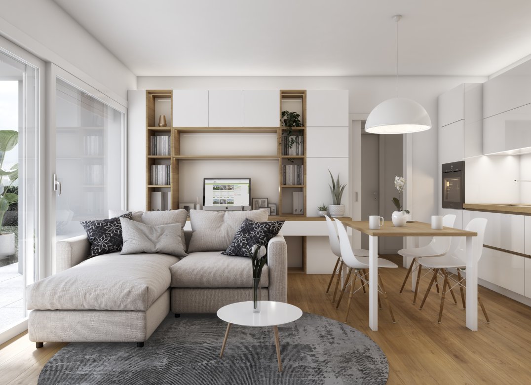 Four-room apartment on the second floor with living room with kitchenette, two bedrooms, a study, two bathrooms, two lobbies, a storage room and two terraces for a total of 23 square meters. Energy class A3 design value.
