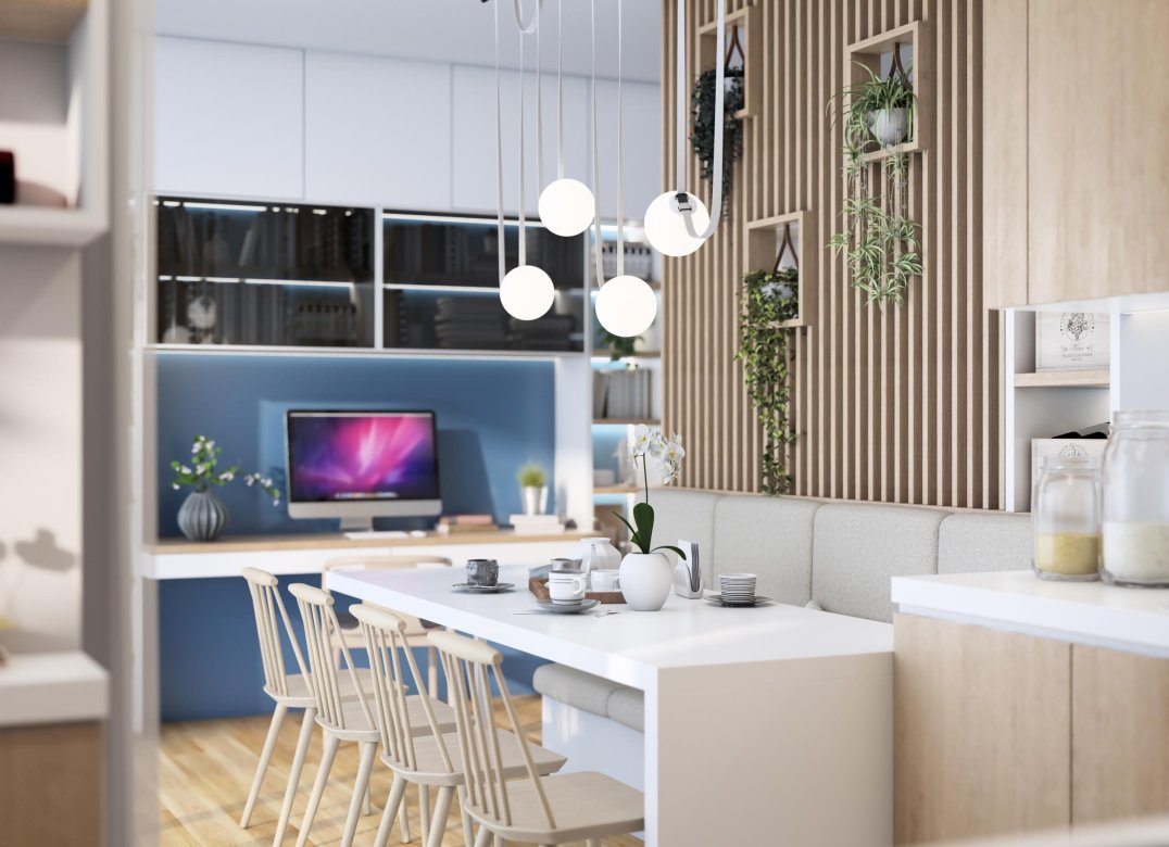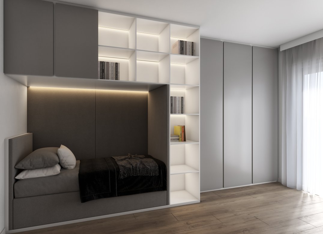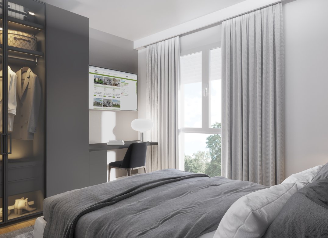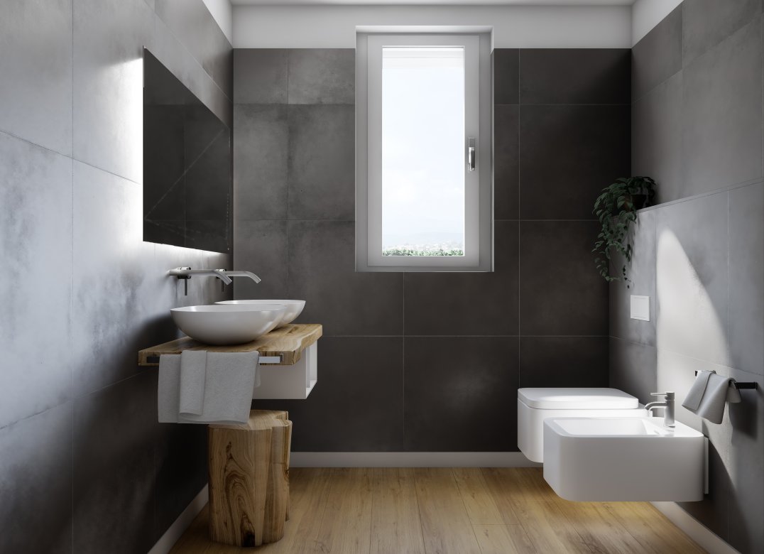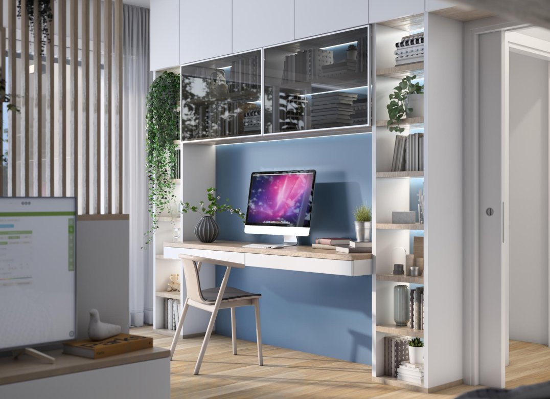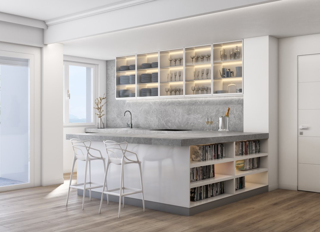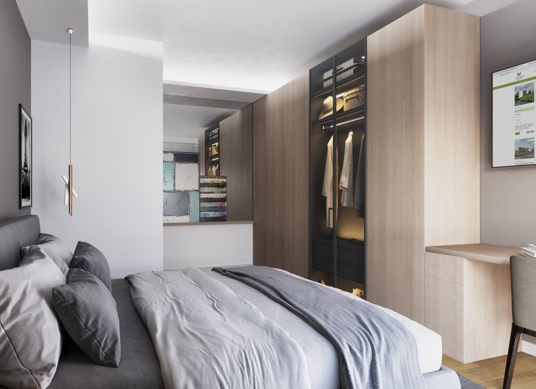 Four-room apartment on the second floor with living room with kitchenette, two bedrooms, a study, two bathrooms, two lobbies, a storage room and two terraces for a total of 23 square meters. Energy class A3 design value.